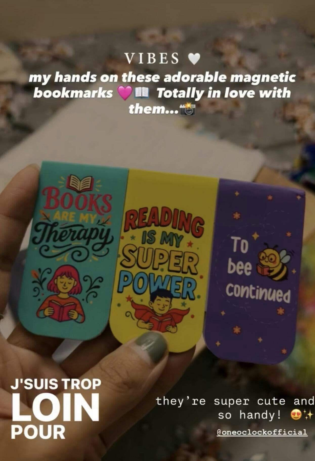 Brighten up your reading time with this vibrant set of 6 magnetic bookmarks! Each bookmark features a playful, eye-catching design and an uplifting quote like: