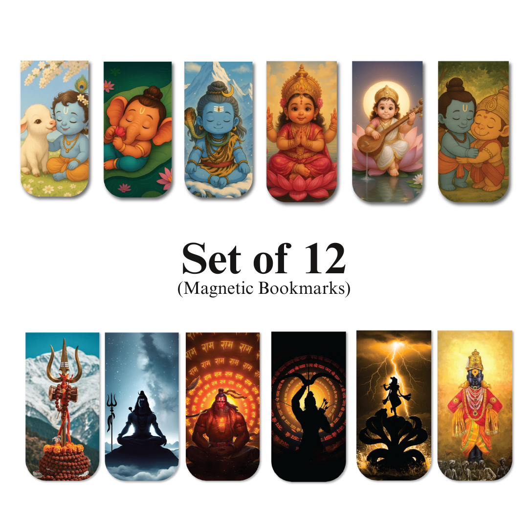Elevate your reading experience with our Divine Sanatani Magnetic Bookmark Set, thoughtfully designed to reflect the profound essence of Sanatan Dharma. Each bookmark features revered deities, a gentle reminder of devotion and inner peace.
