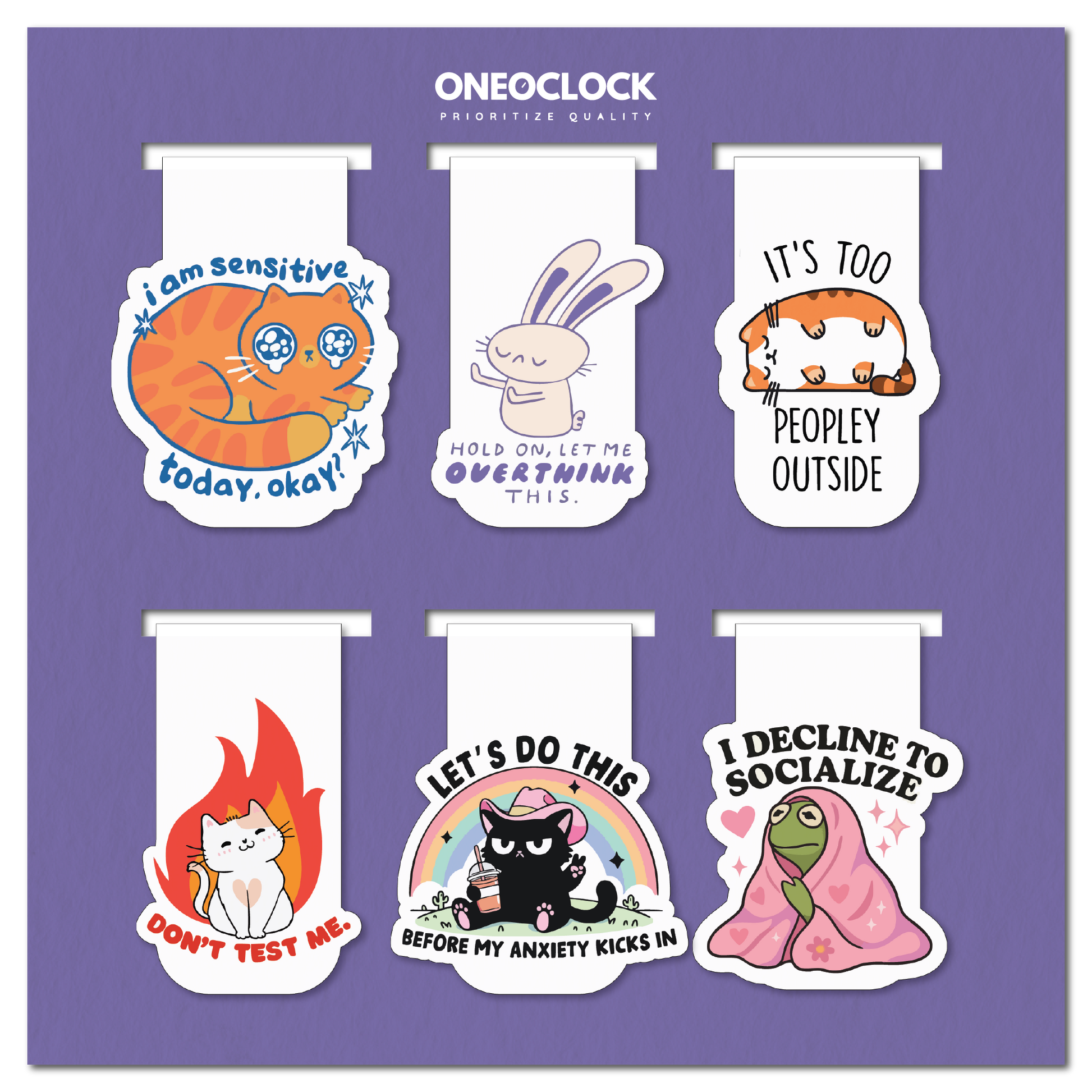 This Relatable Mood Magnetic Bookmark Set from ONEOCLOCK is the perfect mix of cute, funny, and emotionally accurate. Whether you’re feeling anxious, antisocial, or just a little sensitive — these quirky companions will hold your page while holding your vibe.